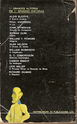 Pese embora essa amputação dê origem a um volume que deve ser prezado sobretudo pelos coleccionadores deste tipo de anomalias, o que resta da amputação é ainda suficientemente sumarento para garantir várias horas de interessante leitura. 11/FC fo uma das primeiras antologias de ficção científica que li quando comecei a interessar-me por este género literário, e se os contos de Damon Knight (Os Análogos), Wyman Guin (Volpla, que quase jurava estar na origem dos vulpis do TERRARIUM), e John Wyndham (Circuito de Compaixão) nunca me saíram da cabeça, foi o conto de Poul Anderson (A Luz), talvez o mais estranho e poético desta antologia, o que mais me marcou, pelo absurdo da situação conjugado com o tratamento literário de Anderson (imaginem um astronauta na Lua, que pensa reconhecer uma certa carcaterística da luminosidade lunar que terá entrevisto num quadro de um famoso pintor, que nunca teria podido visitar o nosso satélite; somem-lhe o facto de que se trata de uma antologia sobre invenções e...).