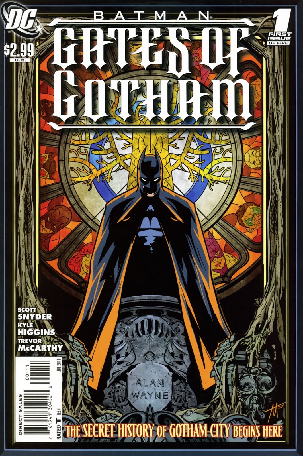 No pólo oposto de BATMAN: ARKHAM CITY situa-se este primeiro número de uma outra mini-série de cinco, com argumento de Scott Snyder e Kyle Higgins, que a arte de Trevor McCarthy traduz magistralmente num chiaroscuro cheio de contrastes. Na verdade é a arte, e sobretudo a cor (a cargo de Guy Major), que conduz o olhar do leitor pela geografia ucrónica de Gotham, uma cidade de sombras e trevas, quer literais, quer figurativas. Numa narrativa que encontra o seu início em 1881 no projecto de arranha-céus e pontes com que os founding fathers da cidade (as quatro grandes famílias, entre as quais as famílias Wayne, Cobblepot, Elliot, e uma quarta ainda não desvelada) pretendem escorar o futuro, e estendendo-se à destruição terrorista de três dessas pontes no presente que serve de ponto de partida a esta BATMAN: GATES OF GOTHAM, é o uso ponderado de pequenas manchas coloridas (luzes de veículos de emergência, candeeiros de iluminação pública) numa paisagem soturna, muitas vezes cortando a página de ponta a ponta, que atrai o olhar do leitor e adensa ainda mais a atmosfera opressiva de uma cidade escura e cheia de mistérios.