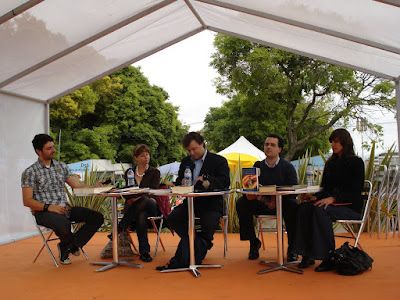 Já no Domingo, o ponto alto da feira foi o debate sobre Literatura Fantástica que juntou Luís Corte Real, Joana Neves e Pedro Reisinho (respectivamente ediores da Saída de Emergência, Contraponto e Gailivro) à Sofia Teixeira, a quem coube o ingrato papel de representar os leitores do Fantástico. Digo que foi o ponto alto, quando o mais correcto seria dizer que devia ter sido o ponto alto. Infelizmente, cheguei cerca de meia-hora atrasado e, nessa altura, o pouco que houve de debate já tinha terminado e assisti apenas ao deprimente espectáculo de editores em modo de auto-congratulação, publicidade e palmadinhas nas costas: ou seja, tudo aquilo de que o Fantástico nacional não necessita neste momento.